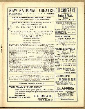 Garden Theatre, NYC; 11 Mar 1901 at New National Theatre, Washington,